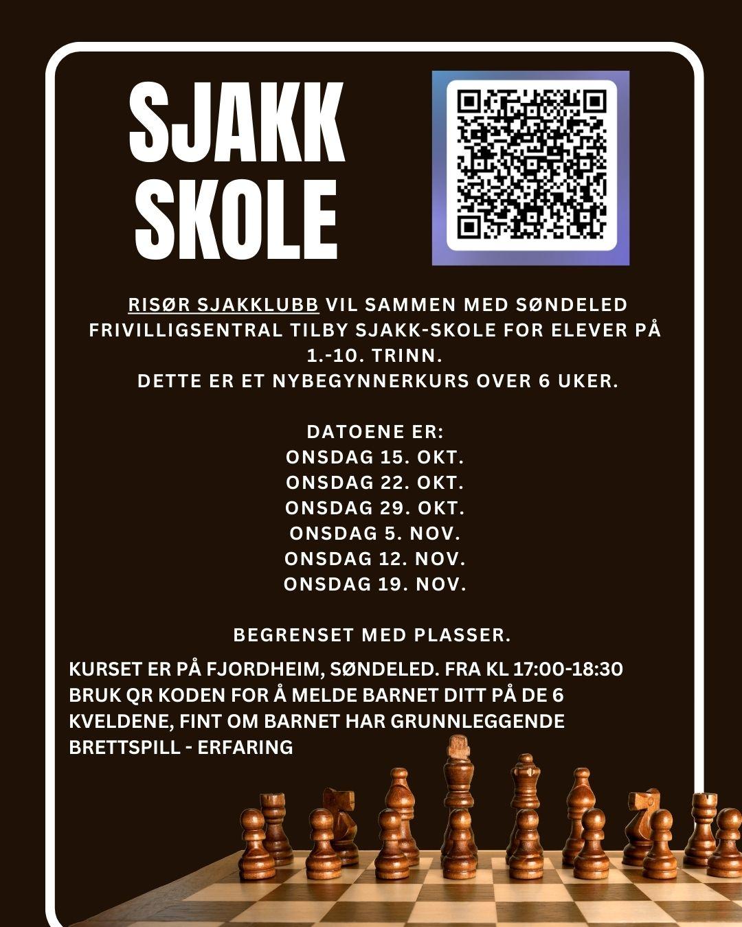 Risør Sjakk-klubb vil i samarbeid med frivilligsentralen holde et 6 ukers nybegynnerkurs for barn og unge fra 1.-10. klasse.